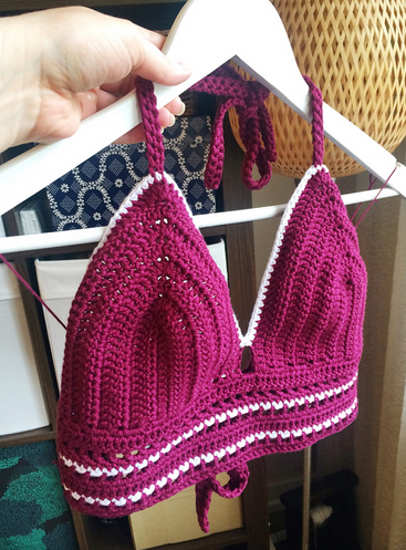 Ihana Hannele teki minulle croptopin valitsemistani Hjertegarnin Blend Bamboo -langoista. Topin materiaali on kiiltävää ja pehmeää, väreiltään fuchsia rose ja luonnonvalkoinen. Bambupuuvilla tuntuu ihanalta päällä!