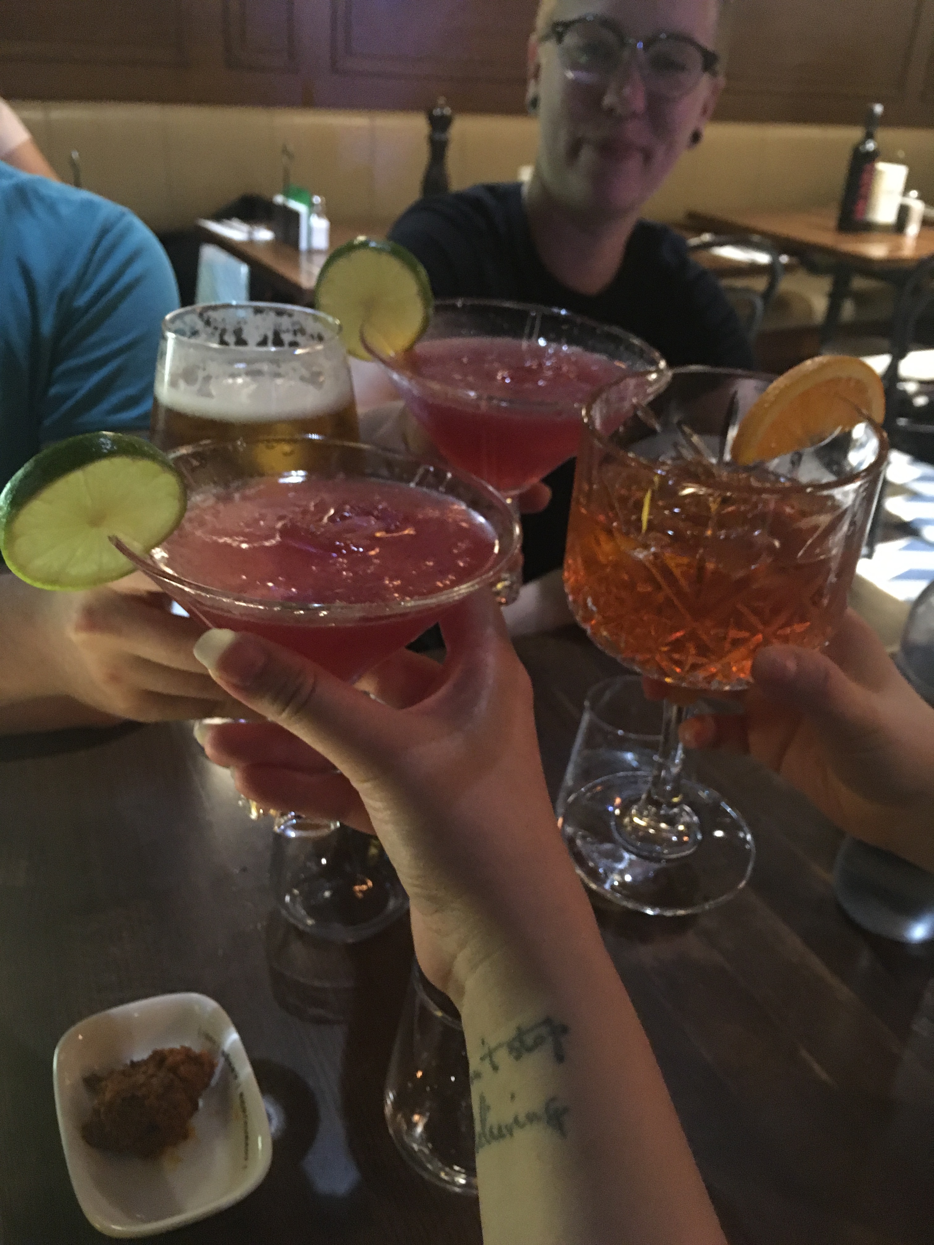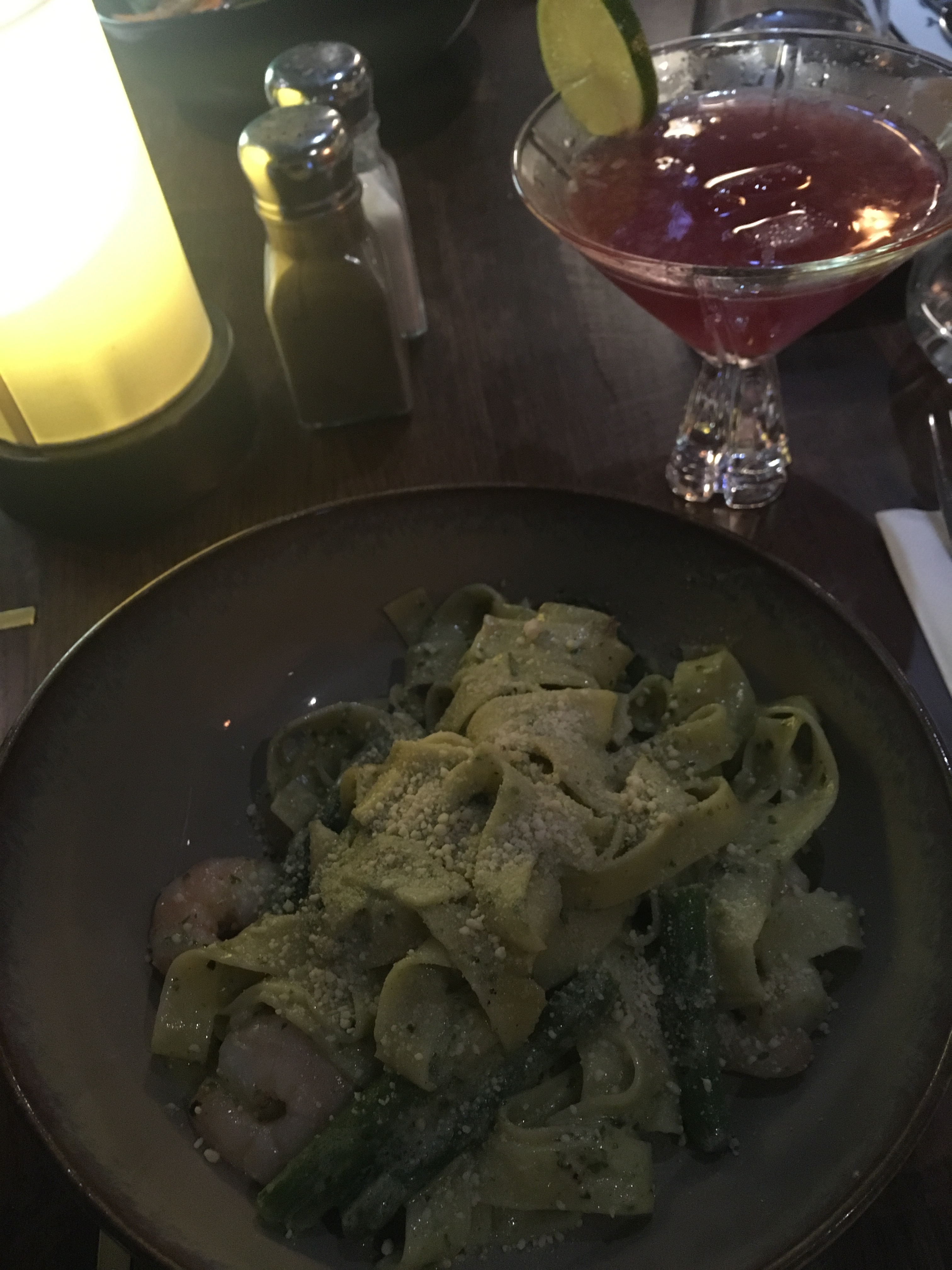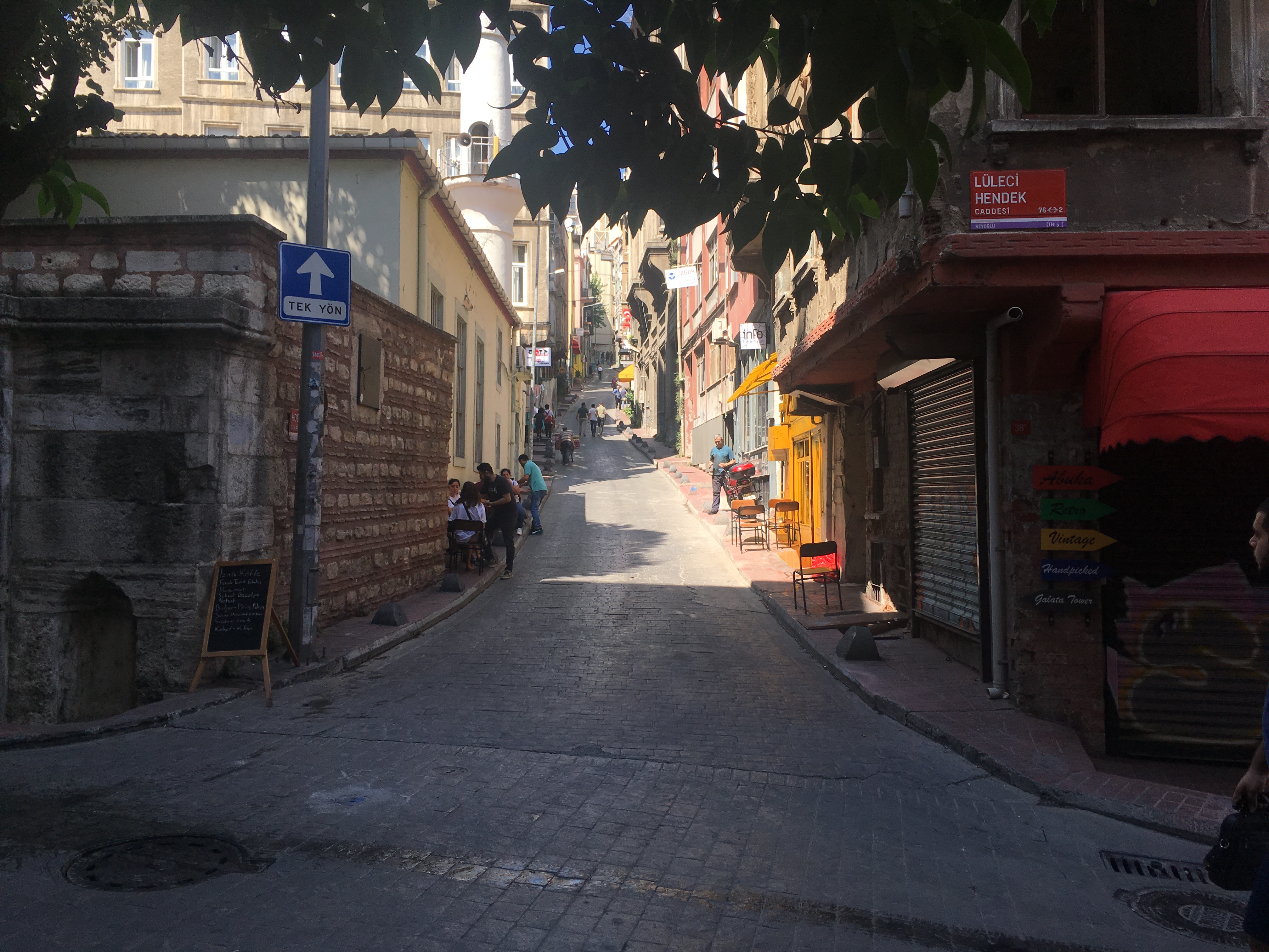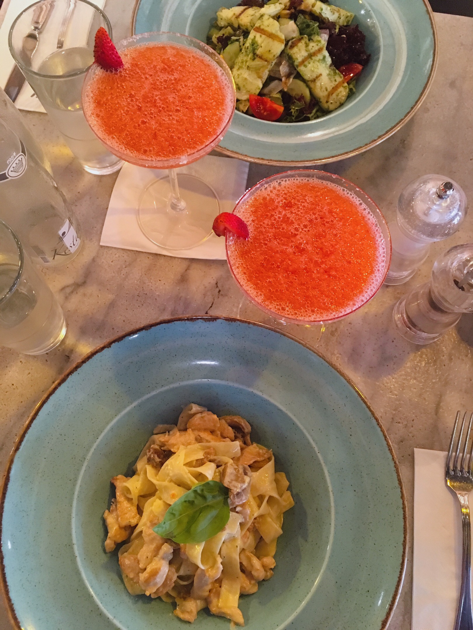 Ensimmäisenä iltana tutkimme ympäristöämme ja etsimme ruokapaikkaa. Löysimme Güney-ravintolan, jossa päädyimme syömään kolmesti reissun aikana. Ravintola oli Galatan tornin juurella, eli aivan majoituksemme vieressä. Söin ensimmäisenä iltana katkarapupastaa, joka oli niin hyvää, että mitäs sitä muuta tilaamaan muinakaan päivinä. Ikävöin sitä annosta nyt koti-Suomessakin. Ravintolasta sai myös hyviä cocktaileja. Güneyssa opimme turkkilaisesta asiakaspalvelusta: kesken tilauksen voi ihan hyvin olla juttuhetki toisen tarjoilijan kanssa, eikä minnekään ole kiire. Ruoan sai silti nopeasti pöytään, mikä on tärkeintä.