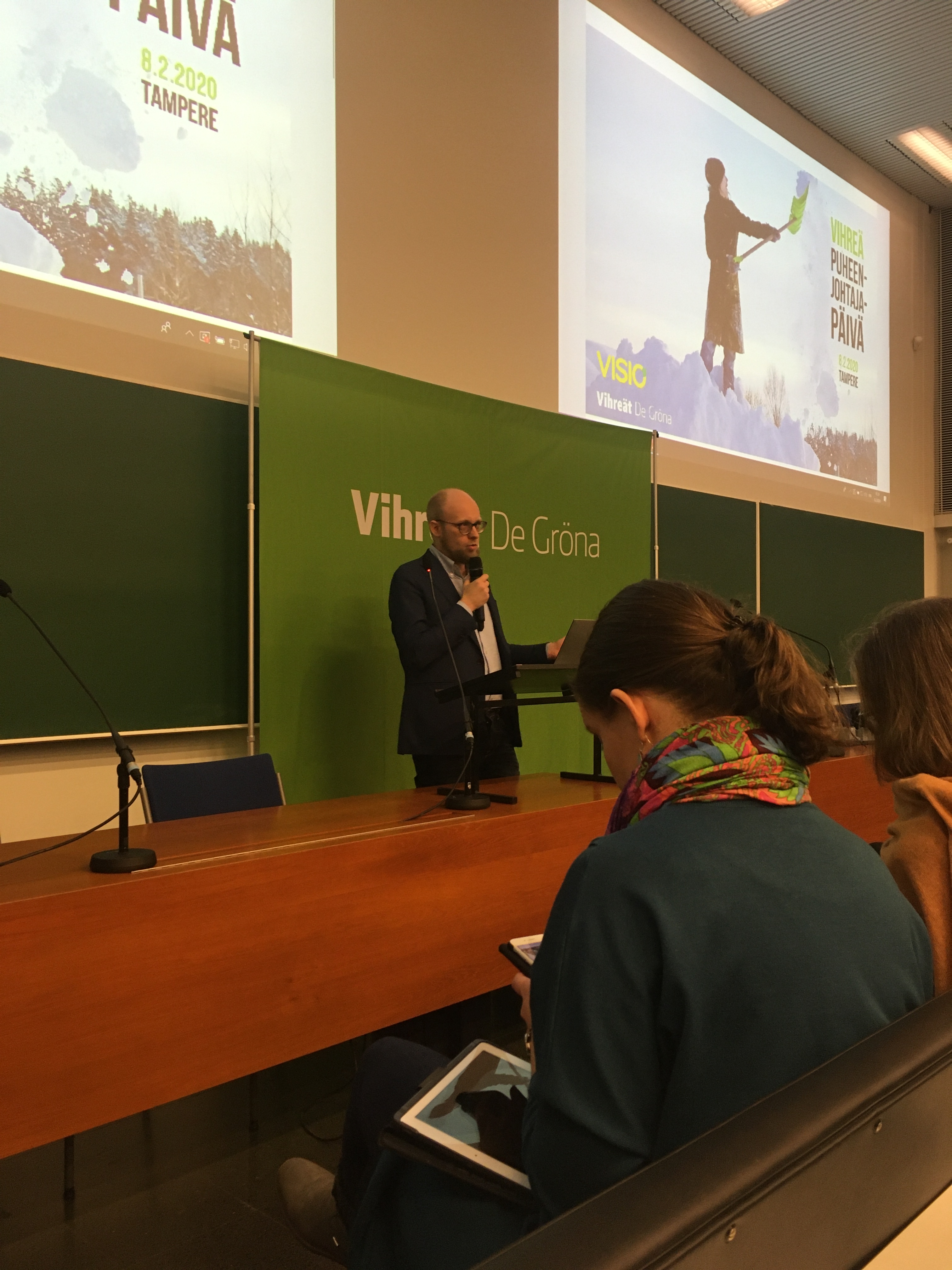 Tänään vihreiden yhdistysten puheenjohtajat kokoontuivat yhdessä puoluejohdon kanssa Tampereen yliopistolle tähän mennessä suurimman Vihreiden puheenjohtajapäivän merkeissä! Puheenjohtajapäivässä kouluttaudutaan ajankohtaisista teemoista ja verkostoidutaan muiden vihreiden toimijoiden kanssa. Tämän vuoden ajankohtaisia teemoja olivat hallitusohjelma ja Vihreiden hallituspolitiikka sekä valmistautuminen kuntavaalityöhön ja ehdokashankintaan.