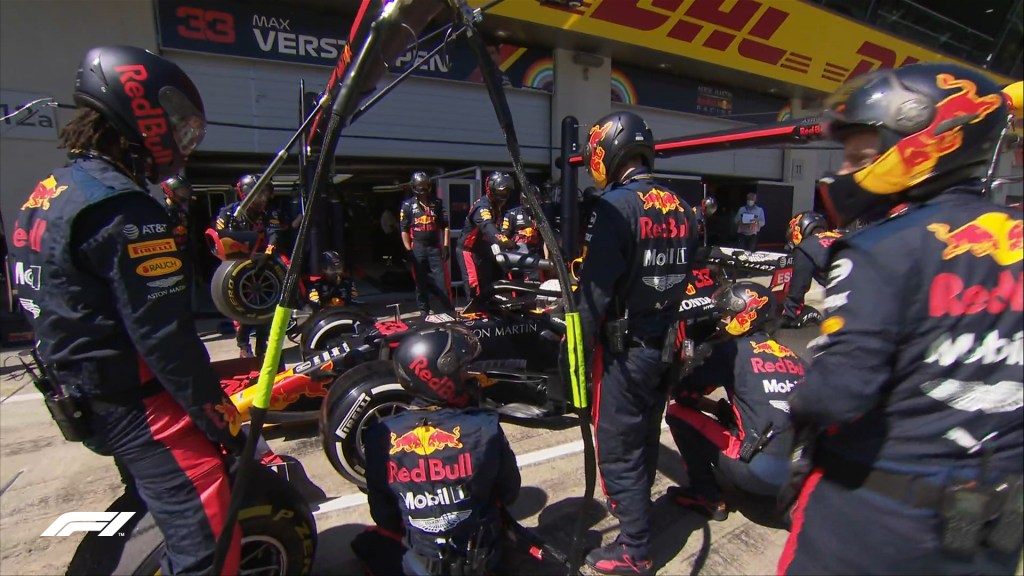 Albon ohittaa Norrisin kolmannella kierroksella. Ylpeys Albonia ja Red Bullia kohtaan on valtava. Hamilton ohittaa Norrisin ja kellottaa nopeimman kierrosajan. Kärkinelikko on nyt perinteinen Mercedes – Red Bull. Ferrarit ovat seitsemäs (Leclerc) ja kymmenes (Vettel). Kierroksella 10 tilanne on 1. BOT, 2. VER, 3. HAM, 4. ALB, 5. NOR, 6. PER, 7. LEC, 8. SAI, 9. STR ja 10. VET. Verstappenin auto hyytyy seuraavalla kierroksella, ja kärkeen nousee tuttu tuplamersu. Verstappen putoaa jonon hännille, mutta hänen autonsa selviää varikolle asti. Hän ei kuitenkaan pääse jatkamaan kilpailua, vaan joutuu keskeyttämään.