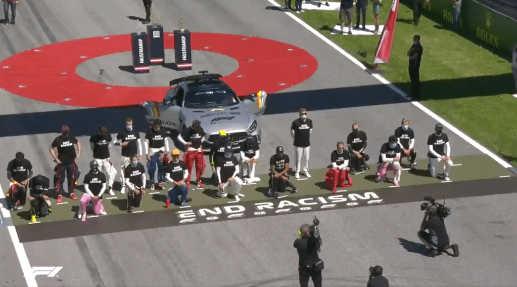 Ennen kilpailun alkua kuljettajat osoittavat tukensa Black lives matter -liikkeelle. Suurin osa kuljettajista polvistuu radalle liikkeen tukemiseksi, kun taas kuusi kuljettajaa (Leclerc, Giovinazzi, Kvyat, Räikkönen, Sainz ja Verstappen) valitsee olla polvistumatta. Hamilton on pukeutunut paitaan, jossa lukee Black lives matter, muiden paidoissa lukee End racism. Mercedeksen tämän kauden autot ja ajoasut ovat kokomustat liikkeen tukemiseksi. On oikein, että autourheilun kuningaslaji ottaa kantaa ihmisoikeuksien puolesta. Hamilton on ollut vahvasti edelläkävijänä antirasistisessa työssä Formuloissa, ja toivon, että hän ei F1-kuljettajista ainoana mustana joudu tekemään työtä yksin, vaan muutkin lähtevät aktiivisesti tekemään Formuloista ja maailmasta antirasistisempaa.