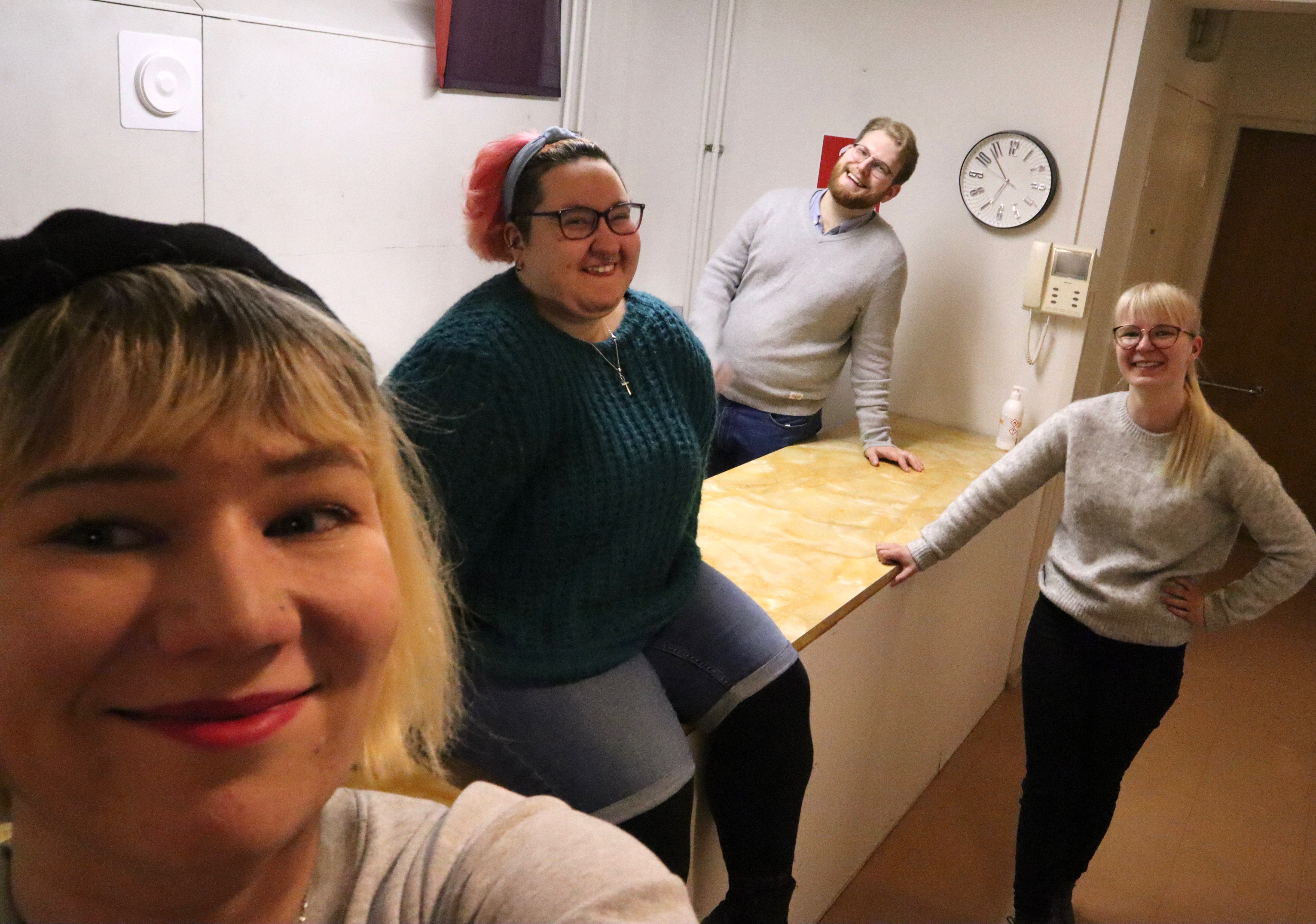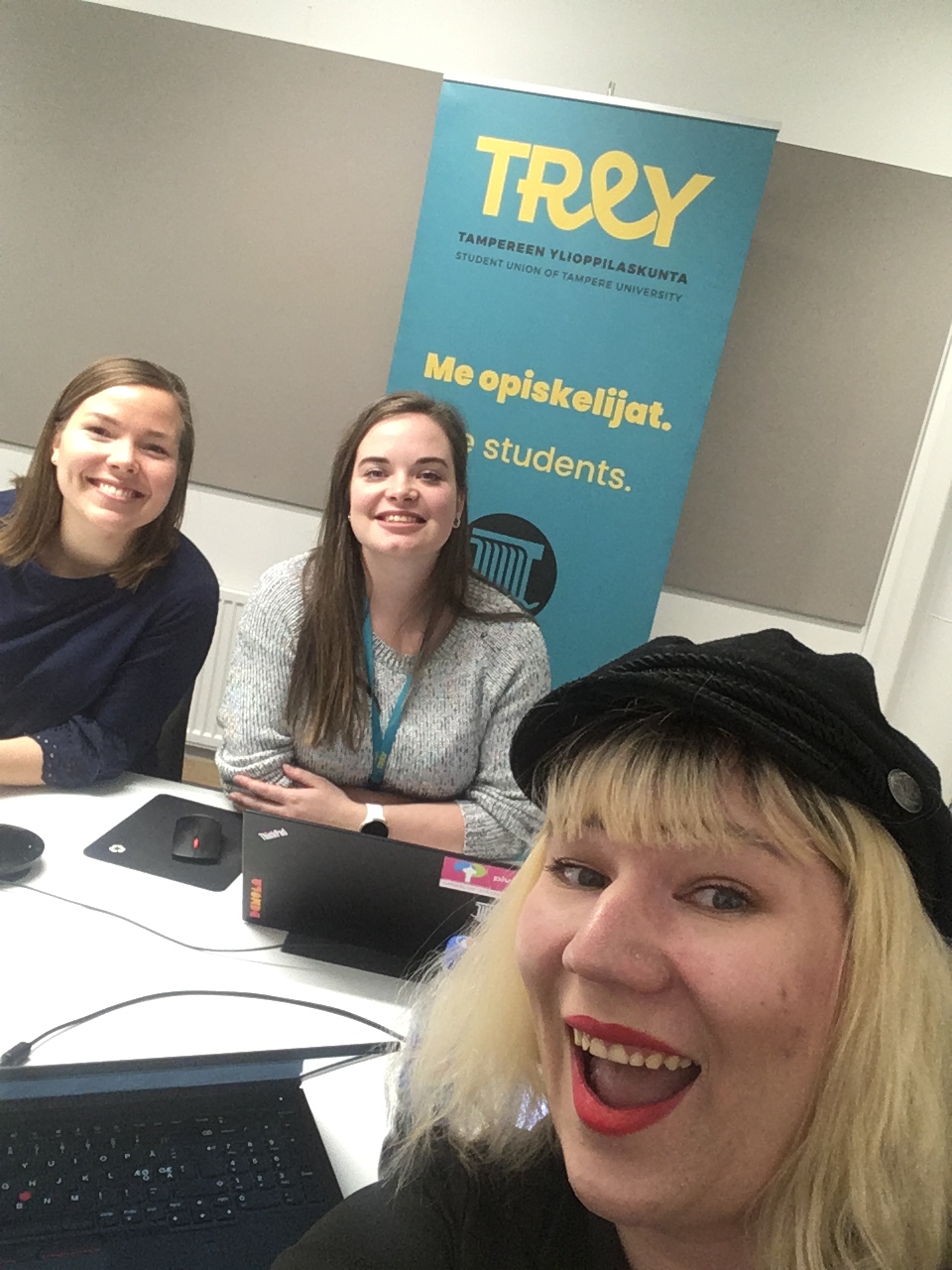 Töissä helmikuu oli aivan mahtavaa aikaa! Kuvasimme ensimmäisen Ajankohtaisen TREYkkösen, josta tulisi rakkaimpia projektejani koko vuonna. SYL:n avausseminaaria vietettiin Tampereella, ja oli ihanaa kokoontua ylioppilasliikkeen kanssa samaan paikkaan – viimeistä kertaa sinä vuonna, mutta sitäpä emme tienneet! Virkistäytymispäivänä kohokohtana olivat toimistositsit, joissa pukeuduin Veskun järjestövaatteisiin – helmikuusta on niin pitkä aika, että en muista mikä teema tarkalleen oli. Vedin toimistomme muuttoa rakennustalosta päärakennukseen, ja loppukuusta olin hyvin väsynyt mutta sitäkin onnellisempi!