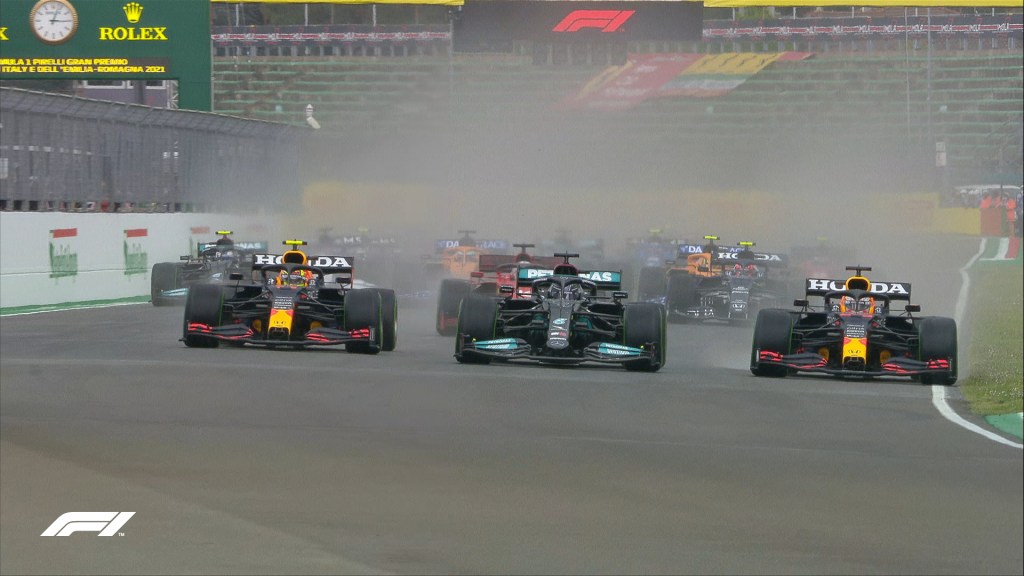 Kauden toisessa osakilpailussa ajetaan Imolassa – ja Italiassa SATAA! Sadekelin kisa, mahtavaa! Kisasta on tulossa muutenkin jännittävä, sillä lähtöjärjestys on kutkuttava mielenkiintoisen aika-ajon jäljiltä: 1. Lewis Hamilton, 2. Sergio Pérez, 3. Max Verstappen, 4. Charles Leclerc, 5. Pierre Gasly, 6. Daniel Ricciardo, 7. Lando Norris, 8. Valtteri Bottas, 9. Esteban Ocon, 10. Lance Stroll, 11. Carlos Sainz, 12. George Russell, 13. Sebastian Vettel, 14. Nicholas Latifi, 15. Fernando Alonso, 16. Kimi Räikkönen, 17. Antonio Giovinazzi, 18. Mick Schumacher, 19. Nikita Mazepin ja 20. Yuki Tsunoda.