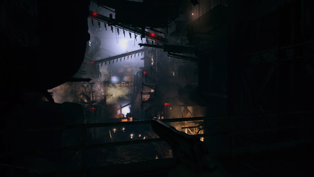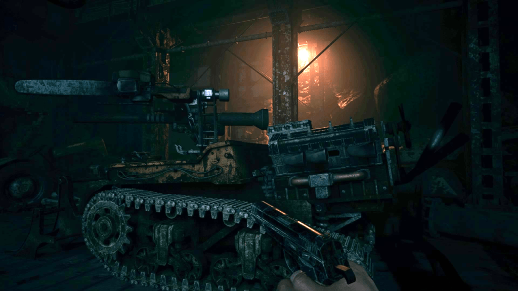 Porakätiset hirviöt nauravat kuitenkin viimeisenä, sillä löydän pian käytävän, jossa niitä roikkuu siisti jono. Miinoitan käytävän ja pidättelen hengitystäni laittaessani virrat päälle. Miina räjähtää, ja tiedän, että ne ovat tulossa. Juoksen. Tehdas on kuumottava ja täynnä mekaanisia hirviöitä, jotka onneksi saa matalaksi ampumalla niitä punaiseen valosydämeen. Saavun valtavan hallin portaikoille, ja hallin keskellä on porrasjärjestelmä kohti ylhäällä kohoavaa turbiinia, joka pyörii vimmatusti. On selvää, että turbiini pitää pysäyttää, jotta pääsisin kiipeämään sen läpi. Eteeni lentää kuitenkin kaksi mekaanista porahirviötä, joilla on jetpackit. Hirviöt lentelevät ylös portaita perässäni, ja minulla ei ole riittävästi panoksia tähän. Huomaan, että turbiinin saa sammumaan ampumalla neljää punaista valoa sen varressa. Taisin kuolla tässä kohtaa, koska palasin halliin pian uudelleen. Nyt ennakoin ja ammuin turbiinin punaiset valot ennen kuin hirviöt hyökkäsivät ja pääsin juoksemaan niitä pakoon pysähtyneen turbiinin läpi. Ilmavirta kiskaisee Ethanin toiseen turbiiniin, jonka voi sammuttaa ampumalla sen keskelle. Kädessäni oleva ase ei riitä sen sammuttamiseen ja kuolen. Toisella kerralla osun ja saan turbiinin sammuksiin pelastaen Ethanin hengen. Eteneminen tehtaassa jatkuu!