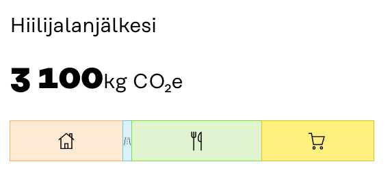 Tämän osion jälkeen laskuri näyttää 3100 kg CO₂e.
