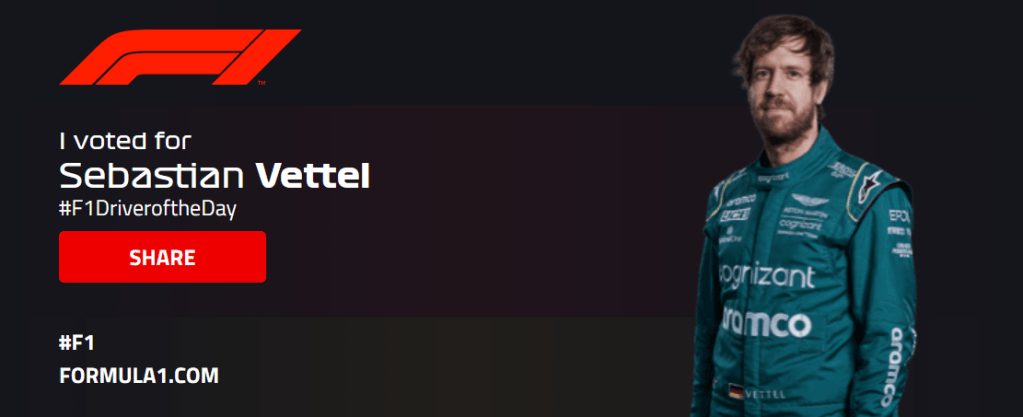 Vettel valitaan Päivän kuljettajaksi. Jatketaan Yhdysvalloissa muutaman viikon kuluttua!