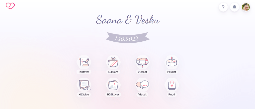 Omia häitään pian juhliva ystäväni esitteli minulle suomalaisen Tahtoo-verkkosovelluksen, jolla pystyy suunnittelemaan ja hahmottelemaan häiden eri osa-alueita, kuten budjettia, tehtävälistoja ja istumajärjestystä sekä lähettämään kutsut vieraille. Sovellukseen pystyy kutsumaan koko häätiimin ja jakamaan esimerkiksi vastuut suoraan Tehtävät-listauksessa oikeille henkilöille. Jos olet suunnittelemassa häitäsi, käytä tätä verkkosovellusta! Tahtoo teki häiden suunnitelusta paljon järjestelmällisempää ja auttoi etenkin budjetin suunnitelussa ja seurannassa – ja oli aika superior värikoodattuun exceliin verrattuna, mikä on minulta aika paljon sanottu.
