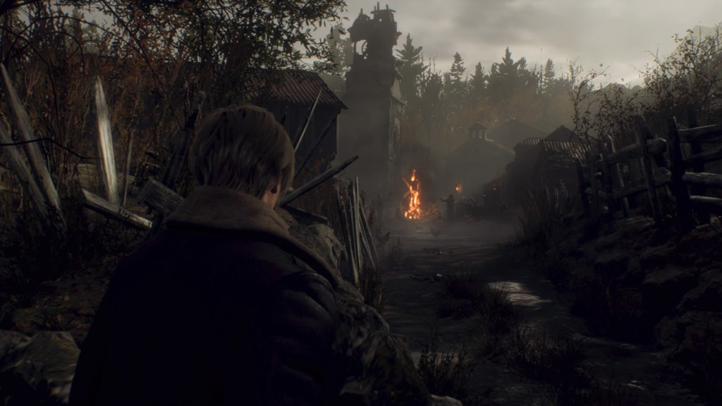 Saavun kylään, jossa kyläläiset polttavat roviolla toisen poliiseista, ja aloittavat sitten Leonin jahtaamisen. Hardcore osoittautui hardcoreksi, kun joukko kyläläisiä piiritti minut ja moottorisahavihollinen pisti aseensa Leonin rinnasta läpi. Auts. Toisen kerran kuolin kyläläisten piiritykseen, kun moottorisahakaveri oli vasta astumassa näyttämölle. Vaikeusastettahan ei kuitenkaan suostuta laskemaan, ei missään nimessä. Kuoleminen on osa kokemusta.