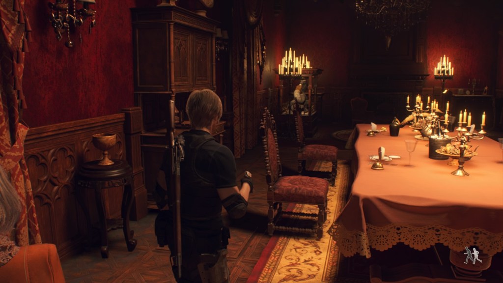 Ruokasali on lämmin ja tunnelmallinen, eikä siellä ole vihollisia. Peräseinällä on kaksi taulua, jotka esittävät miestä ja naista istumassa pöydän ääressä. Leonin ja Ashleyn tulee istua samalla tavalla katettujen paikkojen kohdalle avatakseen mekanismin. Pulmapeli on suhteellisen helppo, ja sen ratkaiseminen antaa käärmepatsaan pään, jonka voisin laittaa aulassa olevaan patsaaseen paikalleen. Patsaassa on paikat vielä muutamalle päälle, jotka löytyisivät muista tiloista.