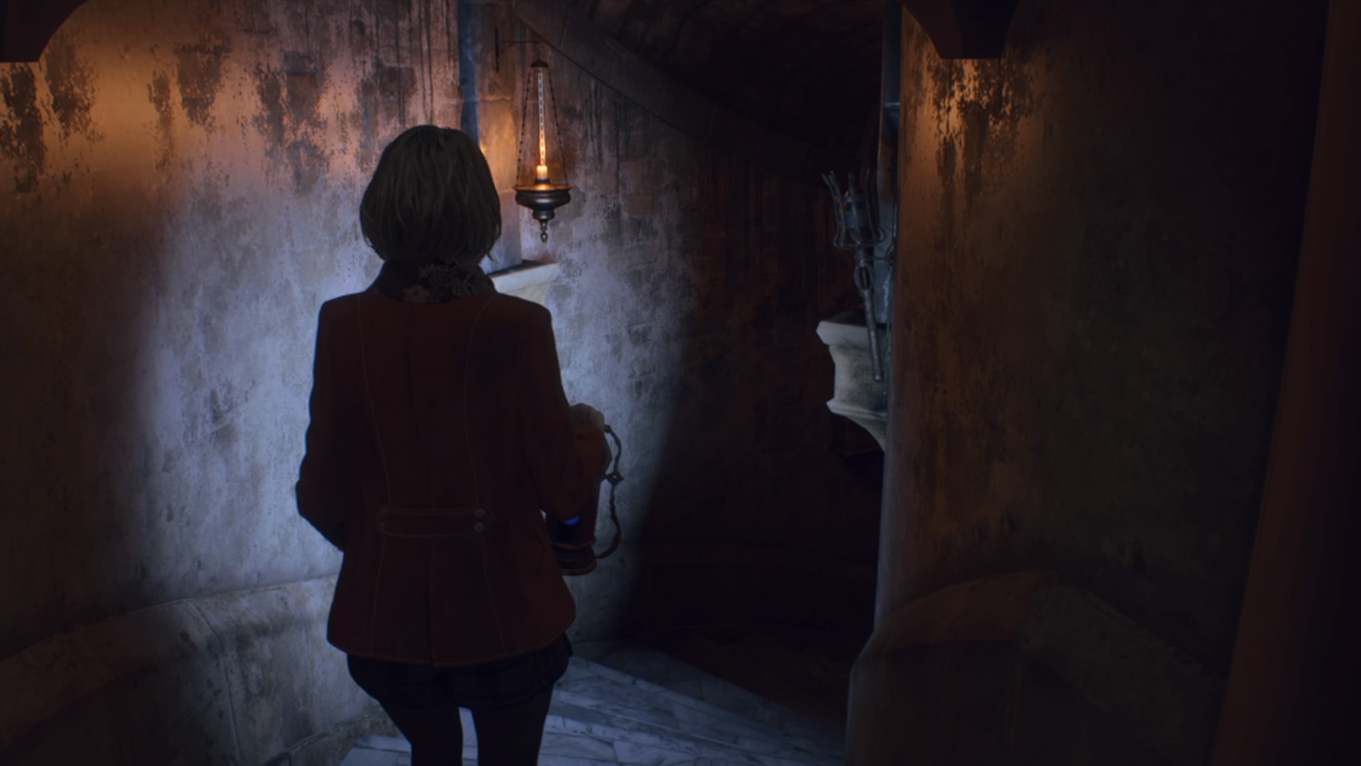 Ashley vapauttaa Leonin, mutta sitten torahampainen huppupäinen hahmo saapuu paikalle kaappaamaan Ashleyn. Leon jää jälleen yksin Ashleyn joutuessa huutaen vihollisten käsiin. Chapter end.