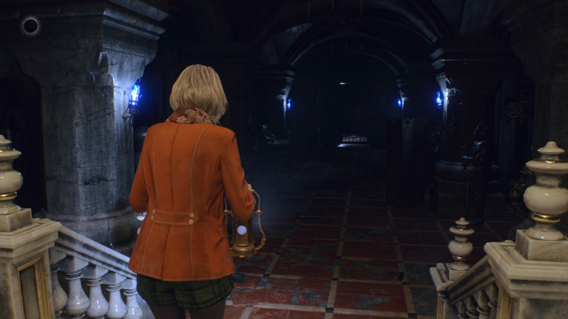 Päästessään mausoleumiin Ashley virkkoo ”I am done with armor” – samoin! Edessä kuitenkin on rivi haarniskoja, ja epätoivo niin minussa kuin Ashleyssa on käsin kosketeltavissa. Haarniskoja hallitaan katsomalla niitä kohti ja valaisemalla sinistä tulta heitä kohti – weeping angels vibe. Aktivoin mekanismit, joilla saisin mausoleumin perältä oveen tarvitsemani arvomerkkilaatan, mutta yksi haarniskoista pääsee yllättämään ja pistää Ashleyn matalaksi. Uusi yritys. Kun Ashley saa tarvitsemansa laatan, sammuu hänen sinisen valon lyhtynsä. Apua. On aika juosta niin kovaa, kuin jaloista lähtee. Väistelen haarniskoja pimeässä ja juoksen Ashleyn hengen edestä. Valitsemani reitti ei päästäkään eteenpäin, joten joudun kiertämään pidemmän reitin kirjaston kautta vihollisia väistellen. Vauhti on kova, ja se onneksi riittää.