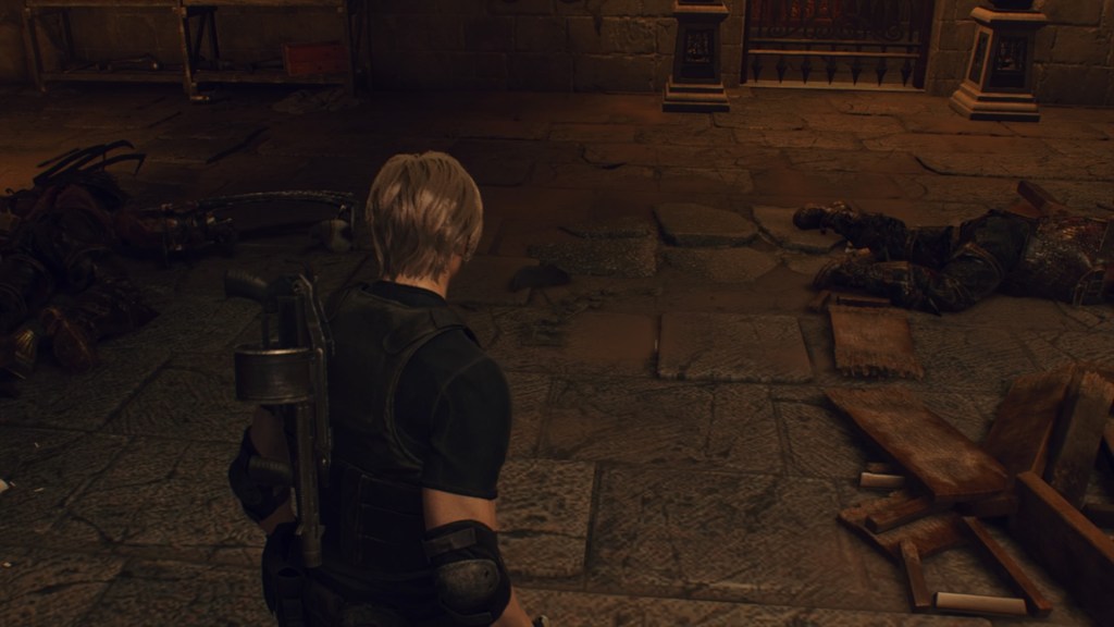 Aloitan chapterin koluamalla Leonilla läpi paikat, joissa seikkailin ensin Ashleylla. Paras löytö on rynnäkkökivääri, jonka kanssa taistelu jää kuitenkin tähän chapteriin. Sitten on aika suunnata tutkimattomaan paikkaan, joka osoittautuu kärrykyydiksi takaisin water hallin ohi linnan yhteen linnan ensimmäisistä auloista, josta on nyt mahdollista hakea loput aarteet. Aulassa on tottakai vihollisia pitämässä omaa seremoniaansa, joten mitäpä minä heitä keskeyttämään – rynnin hakemaan aarteet ja poistun yhtä nopeasti, kuin tulinkin. On aika shoppailla ja parantaa vähän asevarastoa!