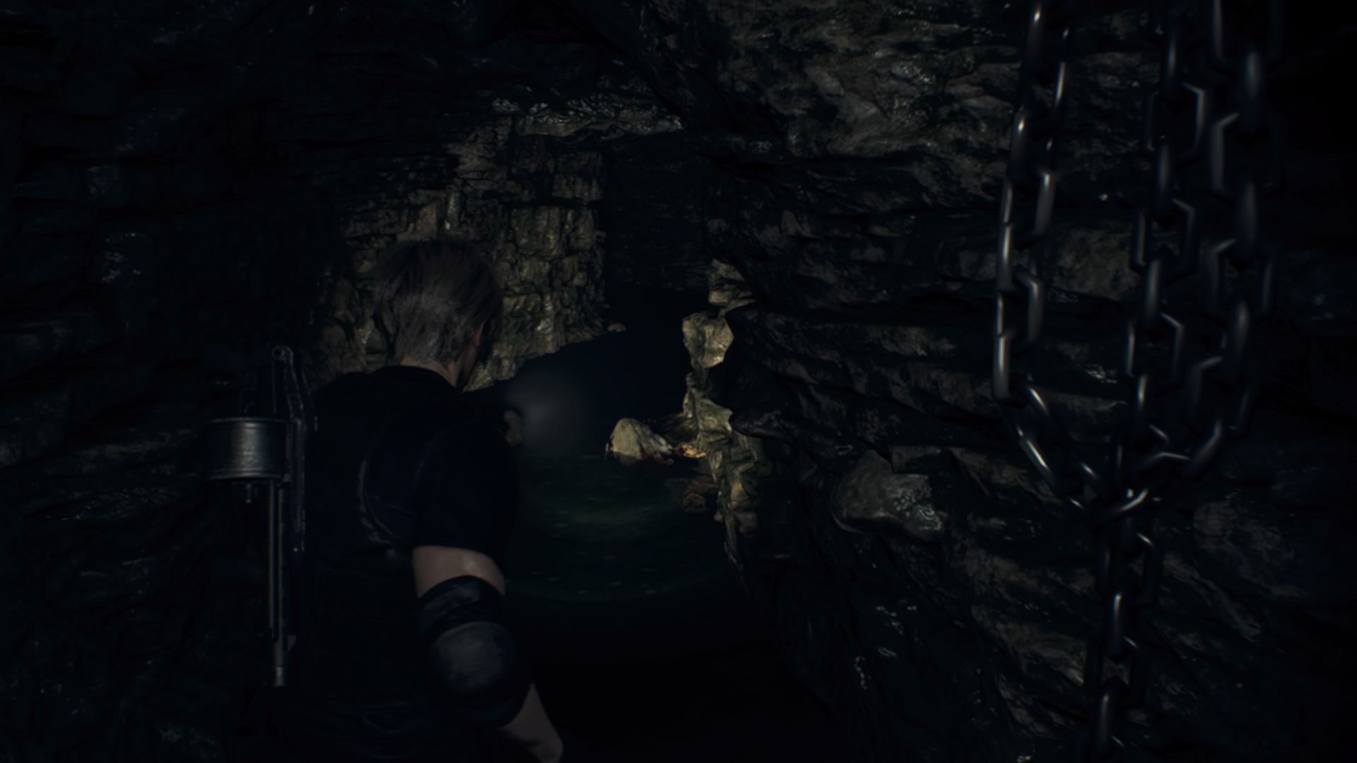 Peli leikittelee jälleen ahtaanpaikankammollani, kun Leon etenee luolassa puristautuen pienistä raoista eteenpäin veden liikkuessa uhkaavasti hänen ympärillään. Vedessä on jotain, enkä aio jäädä selvittämään, mikä se on. Luolasta löytyy kivien ja veden lisäksi vain kivien lävistämiä ruumiita. Otan prioriteetiksi päästä täältä mahdollisimman nopeasti pois, ja pian Leon löytääkin tiensä ylemmäs tunneliin. Löydän tunnelista Merchantin ja epäilyttävän paljon lootia. Eteenpäin vievän oven vieressä on lappu, joka kertoo edessä olevan alueen mekanismeista, jotka vapauttavat nestemäistä typpeä. Tiedän, mikä on edessä, enkä pidä siitä ollenkaan.