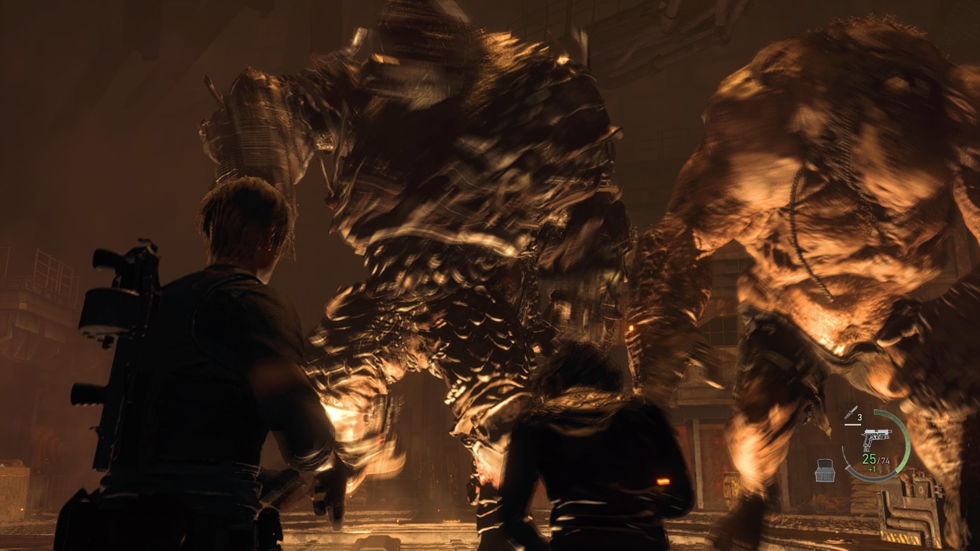 Leonin ja Luisin edessä on ritilä, jonka takana on blast furnace. Huone on pyöreä areena, jonka keskellä on ritilä, ja sen alla laavakattila. Ensisilmäys alueeseen riittää kertomaan kaiken olennaisen alkuperäisen pelin pelanneille: edessä on kaksi el gigantea. Taistelun strategia on helppo: houkuttele jättiläinen ritilän päälle, käännä kahvasta ja katso, kun jättiläinen putoaa laavaan. Tai tämä olisi strategia, jos näiden jättiläisten älykkyys olisi totutulla tasolla. Nämä jättiläiset kuitenkin steppaavat pois ritilältä, jos edes katsoo kahvaa päin, ja vähän alkaa jo turhauttaa. Tainnutuskranaatit ovat pop, ja niillä saan houkuteltua ensimmäisen jättiläisen ritilälle. Kuolen pari kertaa jälkimmäistä jättiläistä vastaan taistellessa. Luis käy hakemassa vähän dynamiittia, mikä räjäyttää panssariin pukeutuneen jättiläisen selästä mutaation esiin. Ammuskeltuani hetken mutaatiota saan houkuteltua jälkimmäisenkin jättiläisen ritilälle ja siitä laavaan. Boom!