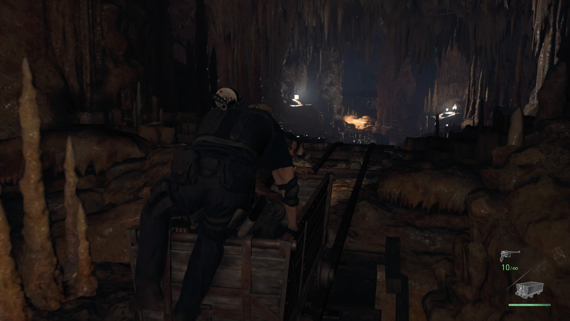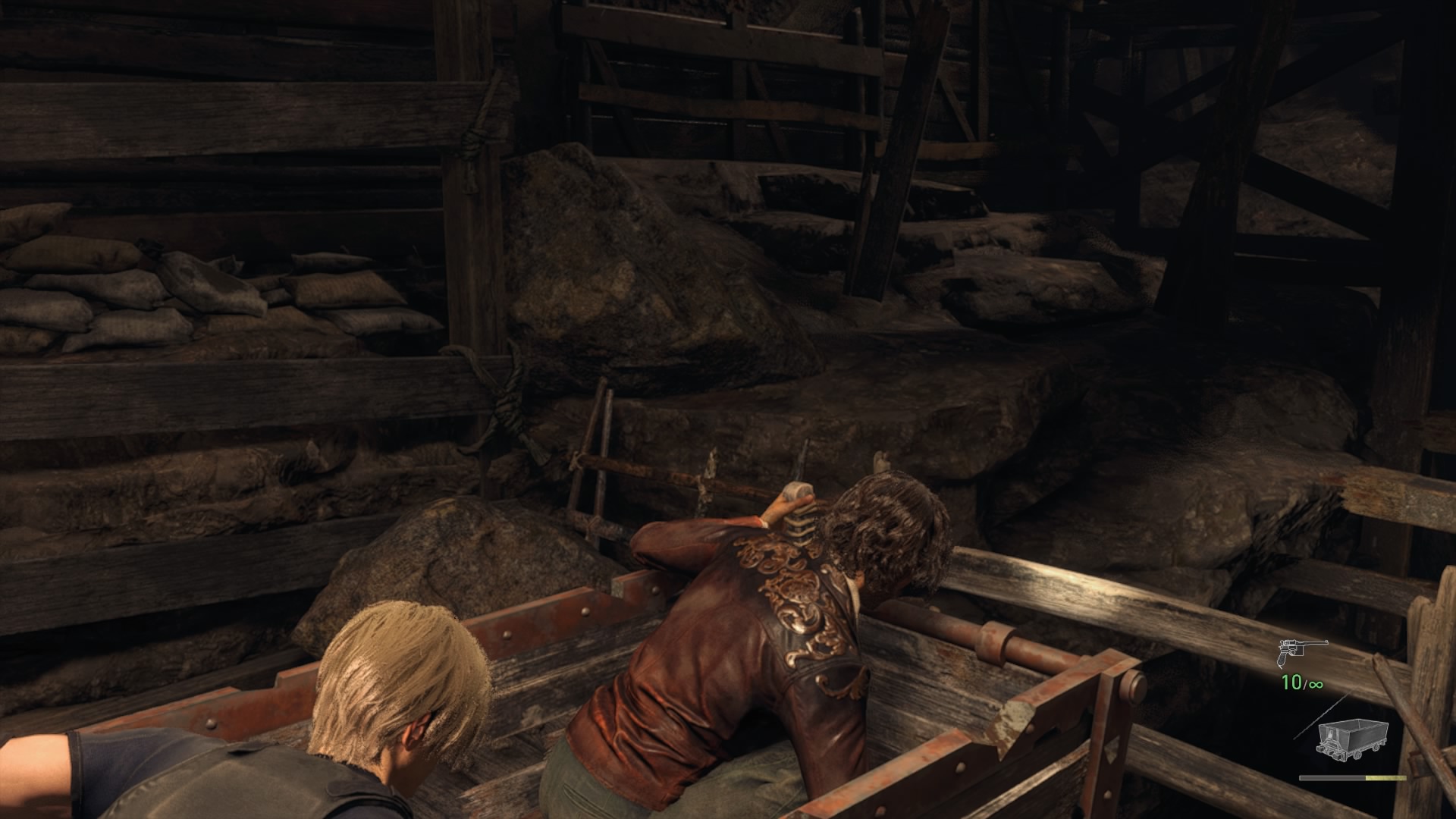 Sitten lähdetäänkin ajelulle! Leon ja Luis löytävät kärryt, jotka kulkevat pitkin kiskoja kaivoksen läpi. Kärryt heittelehtivät sivuttain, ja kaksikon pitää tasapainotella, jotta kärryt pysyvät kiskoilla. Sitten kaveriksi tulevat kärryillä ajelevat kyläläiset, jotka ampuvat Leonin ja Luisin kärryjä tulisilla nuolilla. Kärry ei kestä paljoakaan osumaa, ja pari kertaa tulee kuoltua sen takia. Vuoristorataa jatkuu hetken, mutta saan hyvän otteen osiosta, ja pian Leon ja Luis ajelevat seuraavaan osioon eli the hiveen.