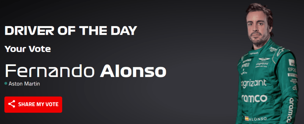 Maaliin saavutaan tosiaan järjestyksessä 1. Max Verstappen, 2. Lando Norris ja 3. Fernando Alonso. Norris nappaa nopeimman kierroksen pisteen, ja hänet valitaan myös Päivän kuljettajaksi.