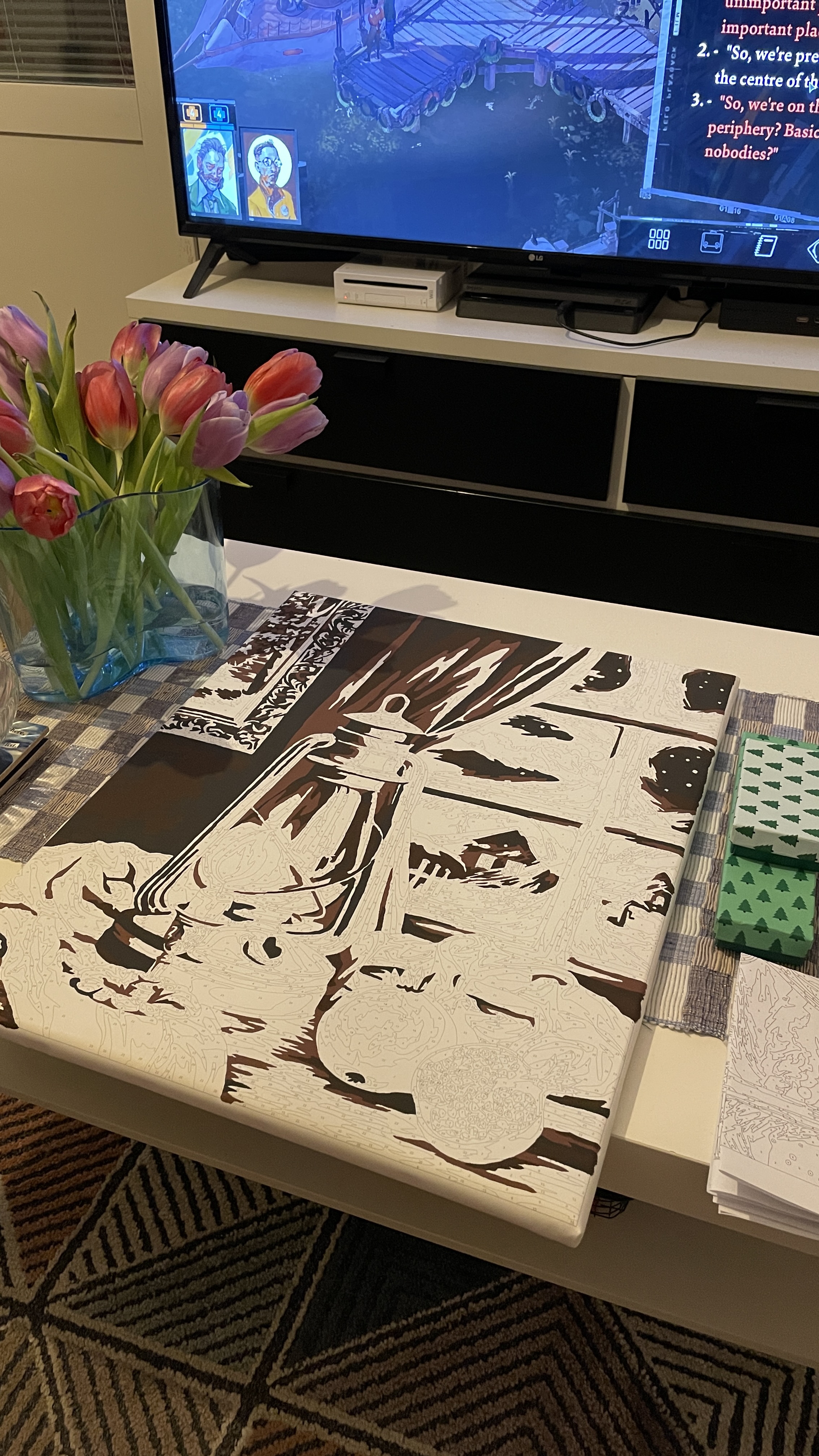 Vuodesta 2023 on tehnyt erityisen etenkin se, että minulla on ollut aikaa harrastaa ja toteuttaa itseäni. Iltoja vierähti paint by numbers -maalausten ja kanavatöiden parissa, ja löysin luovuuden kipinän sisältäni uudelleen. Vuoden merkittävin heittäytyminen itselleni oli dungeon masteriksi ryhtyminen ja D&D-kampanjan vetäminen, ja minun on vaikeaa edes sanoittaa, kuinka paljon se on kasvattanut minua tarinankertojana ja myös ihmisenä. Vuoden parhaat hetket on vietetty ystävien kesken Candlekeep Mysteriesin parissa.
