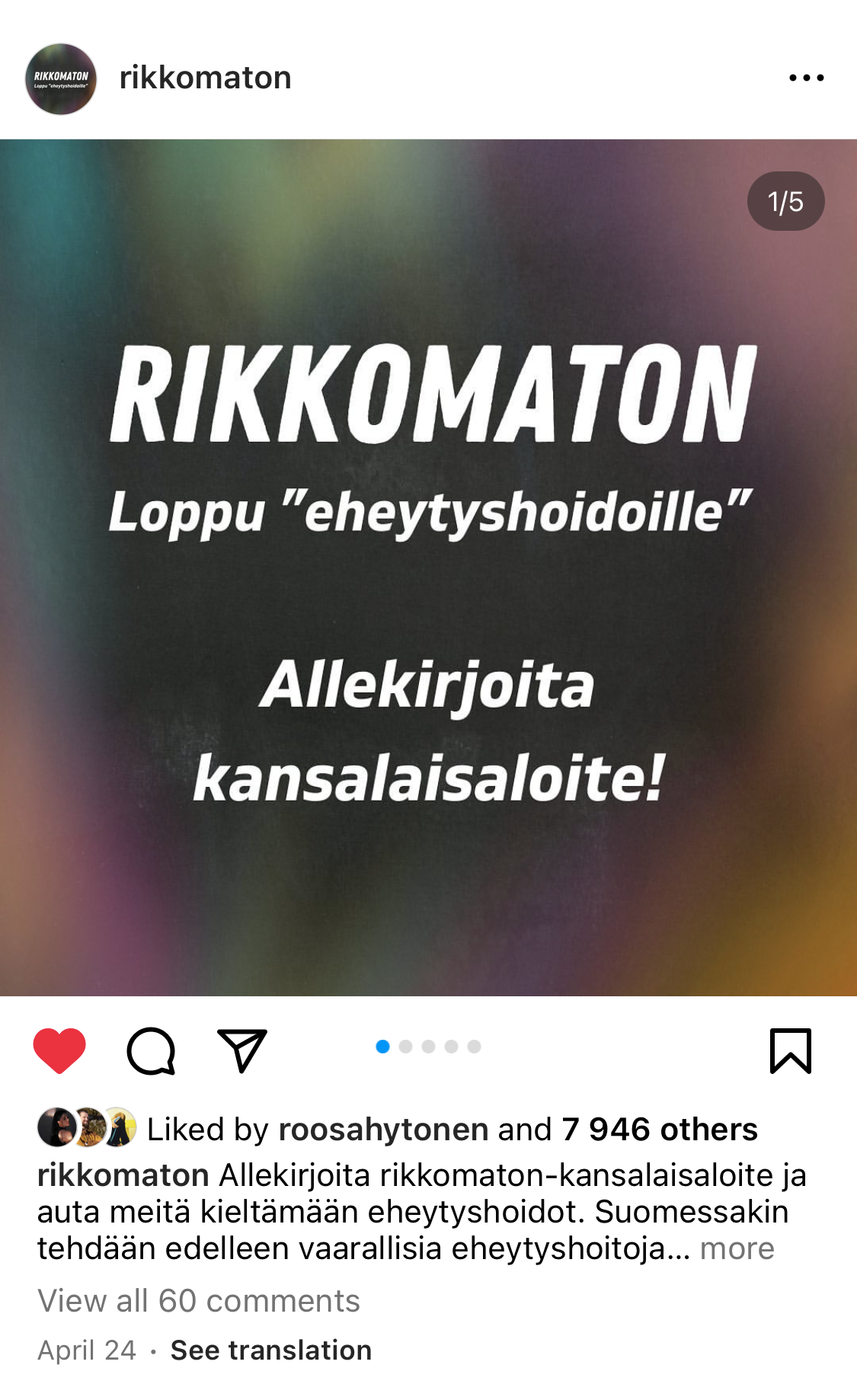 Huhtikuussa kulminoitui useampi iso kevään projekti niin töiden kuin vapaa-ajan puolella. Toimin graafikkona Ehjänä syntynyt -kansalaisaloitteelle, joka raukesi valiokuntakäsittelyssä, joten eheytyshoitojen kieltämistä lähdettiin tavoittelemaan uudella aloitteella Rikkomaton, jonka graafisen ilmeen sain kunnian toteuttaa. Tasapainotin intensiivistä arkea ja eduskuntavaalien tuloksen tuomaa hiipivää epätoivoa videopelien, D&D:n ja elokuvissa käymisen parissa. Vietimme Veskun kanssa 6. vuosipäivää vanhoilla kotikulmilla Härlemissä.