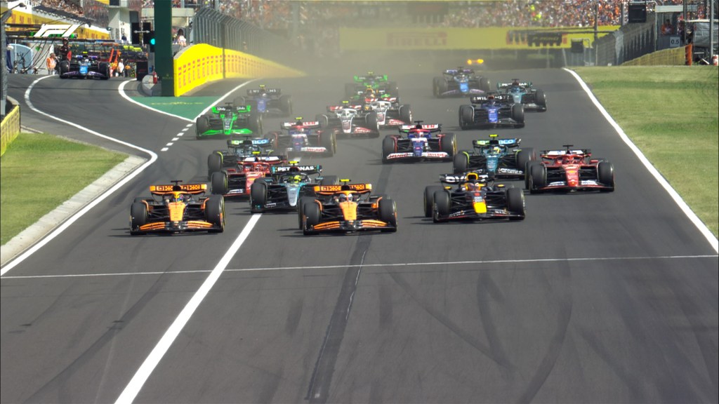 Tänään ajetaan Unkarissa Hungaroringilla, ja lähtöjärjestys kilpailuun on mitä kutkuttavin: 1. Lando Norris, 2. Oscar Piastri, 3. Max Verstappen, 4. Carlos Sainz, 5. Lewis Hamilton, 6. Charles Leclerc, 7. Fernando Alonso, 8. Lance Stroll, 9. Daniel Ricciardo, 10. Yuki Tsunoda, 11. Nico Hülkenberg, 12. Valtteri Bottas, 13. Alex Albon, 14. Logan Sargeant, 15. Kevin Magnussen, 16. Sergio Pérez, 17. George Russell, 18. Guanyu Zhou ja 19. Esteban Ocon. Pierre Gasly starttaa kilpailuun varikkosuoralta. Pérezilla alkaa olla näytön paikka, sillä huhujen mukaan hänen tallipaikkansa Red Bullilla on uhattuna, vaikka hän allekirjoittikin juuri jatkosopimuksen tallin kanssa…