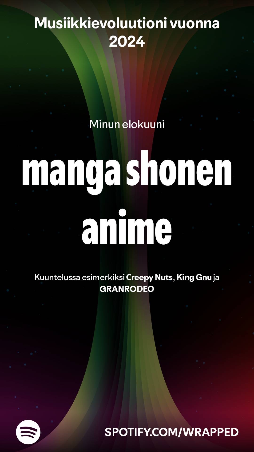 - animesta tuttu musiikki, jossa menen enemmän katsomieni anime-sarjojen kuin artistien perässä. Tänä vuonna kovassa huudossa olivat Bungo Stray Dogs, Jujutsu Kaisen ja Mashle.