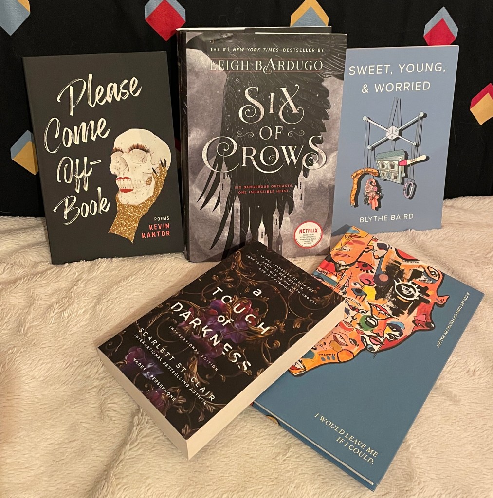 Kirjojen puolesta luin kaksi fantasiakirjaa: Leigh Bardugon Six of Crows ja Scarlett St. Clairin A Touch of Darkness. Vuonna 2022 luin Bardugon Shadow & Bone -trilogian, ja tämä vuonna 2023 lukemani Six of Crows sijoittuu sen kanssa samaan maailmaan. Rakastin Six of Crowsia etenkin sen hahmojen vuoksi: Bardugo onnistuu kirjoittamaan hahmoja, jotka ovat kukin omalla tavallaan rikki, mutta jotka tulevat yhteen ja kasvavat yhdessä ihmisinä uniikilla ja koskettavalla tavalla. Hyvien henkilöhahmojen lisäksi Six of Crowsissa on kutkuttava ja jännittävä juoni.