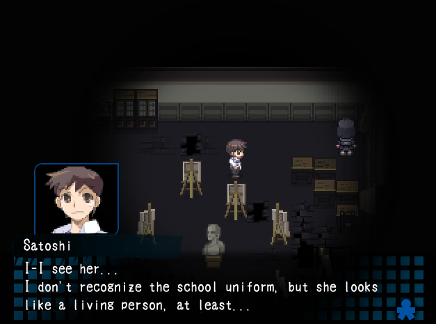 Satoshi ja Yuka saapuvat kirottuun taideluokkaan, jossa elossa oleva tyttö seisoo nurkassa kasvot seinää kohti hyvin The Blair Witch Project -henkisesti. Satoshi juttelee tytölle, mutta tyttö tuntuu vain mumisevan itsekseen. Mitsuki törmää Satoshiin ja Yukaan käytävällä, mutta tyttö juoksee kaksikkoa pakoon. Satoshi ja Yuka seuraavat Mitsukia ja löytävät tämän aulatilasta. Mitsuki on hysteerinen ja pakenee jälleen huutaen. Satoshi ja Yuka jatkavat rakennuksen tutkimista ja löytävät muun muassa käytävän, jossa on hahmoja satuttavia vihreitä kalloja, sekä isomman oven, joka on peitetty pahoja henkiä karkoittavilla lapuilla. Olen varma, että meidän on jossain kohtaa pakko mennä tästä pahanenteisestä ovesta.