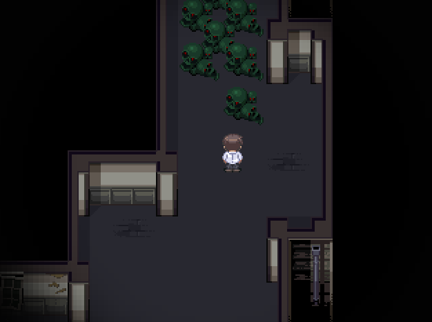 Satoshi, Naomi ja Yuka löytävät rehtorin kansliasta tikkaat, jotka johtavat alaspäin aina koulun alla olevaan hylättyyn pommisuojaan asti. Hylätyssä pommisuojassa on ruumiita ja pulmapelejä, jotka ohjaavat kolmikon liikkumista tilassa. Kolmikko törmää Taguchiin, joka on kuin ihmeen kaupalla hengissä. Taguchi jatkaa juoksemista.