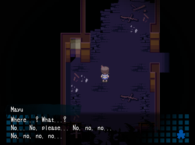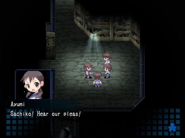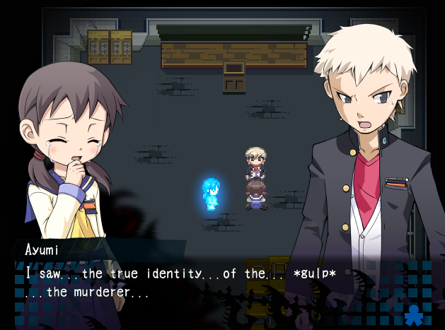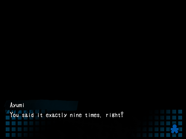 Ayumi ja Yoshiki löytävät antiikkinuken, joka lausuu hirvittäviä lauseita tapahtuneista murhista ja toistaa anteeksipyyntöjä. Yoshiki pohtii, riittäisikö nukke todisteeksi katumuksesta, ja kaksikko suuntaa nuken kanssa sairastuvalle. Kummitukset pitelevät Mayua edelleen, ja Ayumi soittaa nuken sanoman kummituksille. Kummitukset kuitenkkin lähtevät Mayun kanssa, ja Ayumi seuraa heitä käytävälle. Yoshiki löytää Ayumin itkemästä, parempaa sanaa löytämättä, ruumismössön, ääreltä. Kaksikko uskoo kyseessä olevan Mayu. Ayumi juoksee itkien pois, mutta ennen kun Yoshiki ehtii seurata, tummiin verhoutunut hahmo yllättää hänet ja rahaa Yoshikin pois iskettyään tätä päähän. Tuo kohta, jossa mysteerinen hahmo ilmestyy hiljakseen ruudun alareunaan tekstitysten alle, seisauttaa vereni vieläkin.