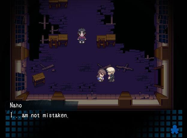 Satoshi ja Naomi pääsevät jälleen toiseen koulurakennukseen ja etsivät Yukaa. He löytävät heti kättelyssä Kurosakin tuoreen ruumiin – ja Yukan kengät. Samantien peli siirtyy Yukan luo, joka murehtii hukkuneita kenkiään. Sitten Sachiko ilmestyy paikalle, ja tilanne kääntyy nopeasti Yukalle todella uhkaavaksi… Satoshi ja Naomi etsivät Yukaa, mutta löytävät sen sijaan Morishigen verisen puhelimen, jonka viimeisin tallenne on sekoitus maanista naurua, Mayun nimen toistoa ja pauketta lasia vasten. Ei näytä hyvältä Morishigen osalta. Satoshi ja Naomi pyörivät koulurakennuksessa tovin, mutta viimein heidän ja Yukan tiet risteävät! Eikä siinä vielä kaikki: Yukan haltuun on jotenkin päätynyt videokasetti, joka on jatko-osa Kibikin Heavenly Host -tutkimuksista. Ohjaan hahmot salamannopeasti takaisin vahtimestarin huoneeseen katsomaan kasetin.