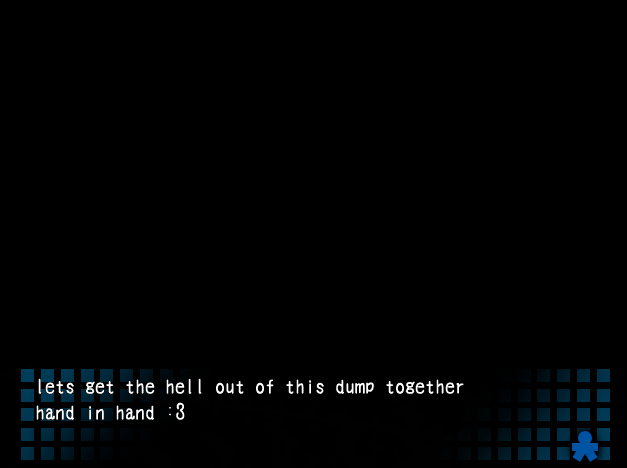 Tässä kohtaa pelikokemukseni haarautuu kahteen eri lopetukseen, joista toinen haarautuu vielä kolmanteenkin myöhemmin. Selostan ensimmäisenä pelin true ending’in ja kerron sen jälkeen, miten kaksi muuta kokemaani lopetusta eroaa siitä.