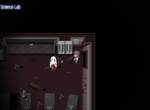 Ayumi ja Yoshiki seuraavat Sachikoa labraluokkaan, jonne astuminen pysäyttää veret niin pelaajalta kuin hahmoilta. Oven lähellä seisoo valkoiseen kaapuun verhoutunut jaloillaan seisova hahmo, joka näyttää vääristyneeltä ja pelottavalta kummitukselta. Kierrän hahmon kaukaa ja tutkin luokan muilta osin. Sitten ovi menee lukkoon.