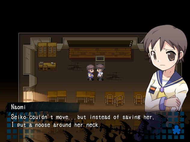 Blogiteksti sisältää yksityiskohtaisia juonipaljastuksia pelistä Corpse Party (2008), joka on psykologinen yliluonnollinen selviytymiskauhupeli. Jos haluat lukea tiiviin loppuarvosteluni, joka ei sisällä suoria juonipaljastuksia, voit hypätä suoraan Loppuarvostelu-osuuteen.