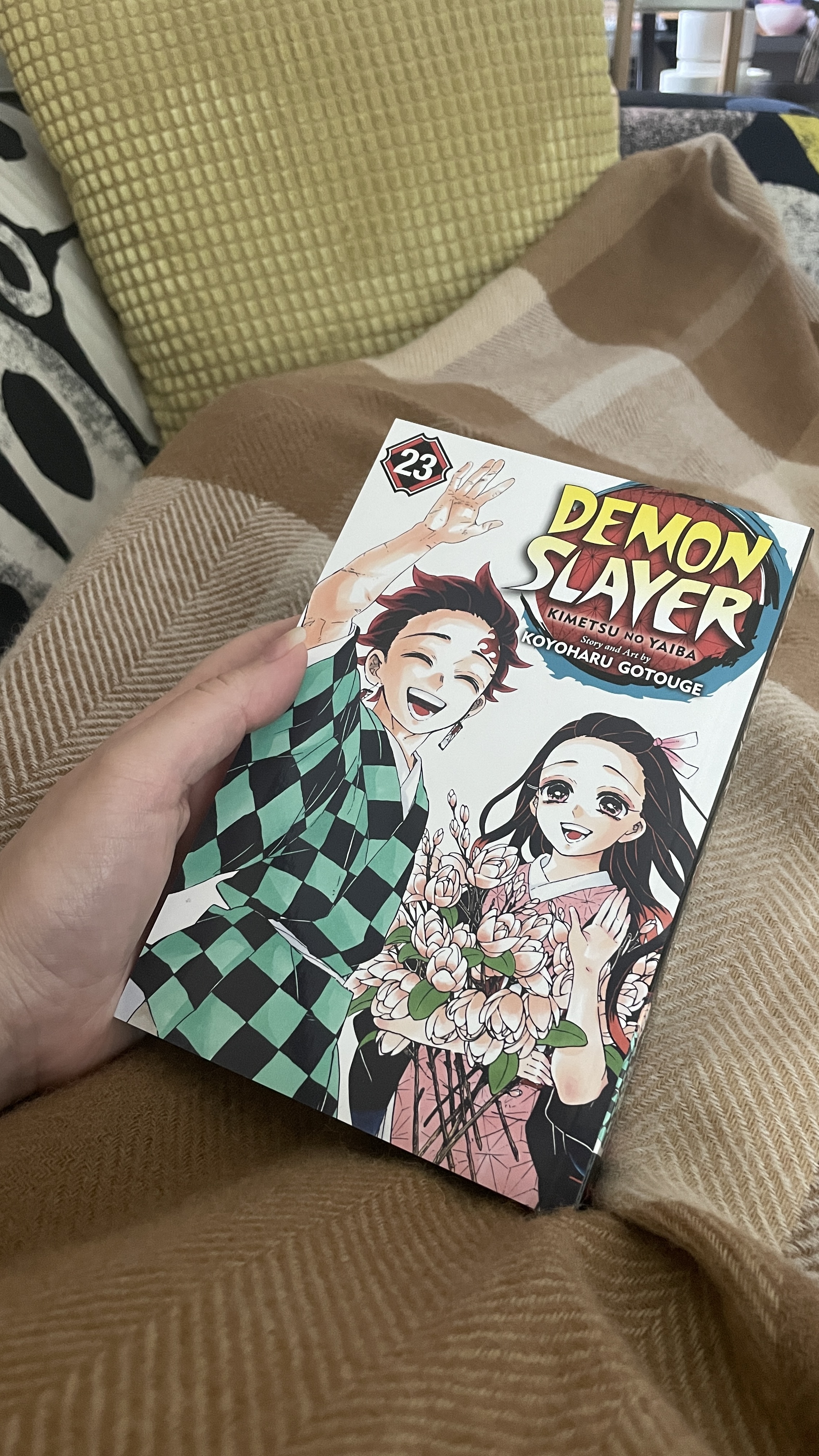 Katsoimme Demon Slayer -animen Veskun kanssa keväällä, ja se jäi niin jännittävään kohtaan, että ostin samantien koko mangasarjan yhtenä boksina. Aloitin mangasarjan lukemisen alusta sen sijaan, että olisin jatkanut siitä, mihin anime jäi, vaikka Demon Slayer onkin suhteellinen uskollinen alkuperäismateriaalilleen. 23 mangaa tuli luettua aika nopeasti, sillä tämä on parhaita manga- ja anime-sarjoja, mitä olen koskaan kohdannut.