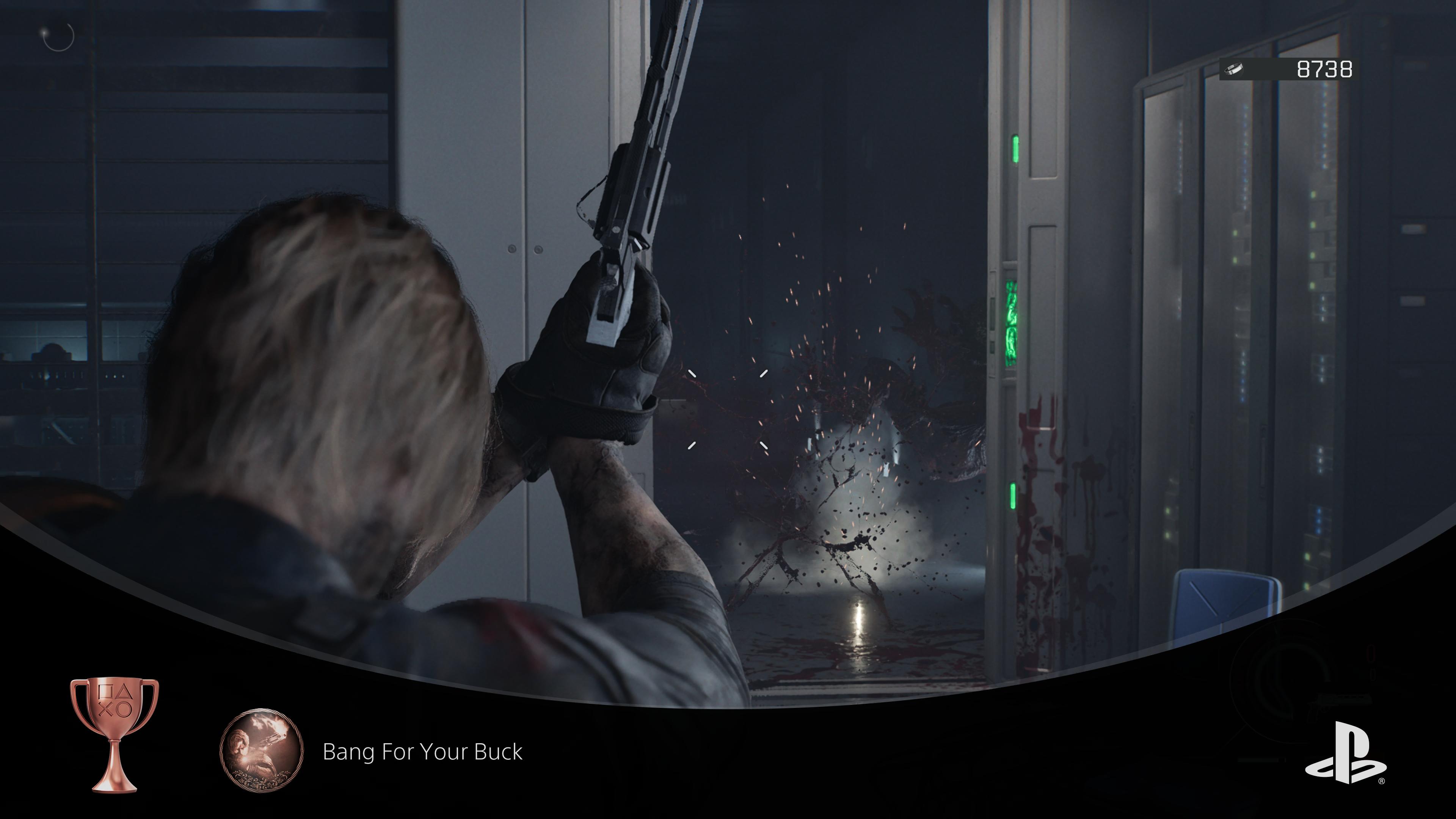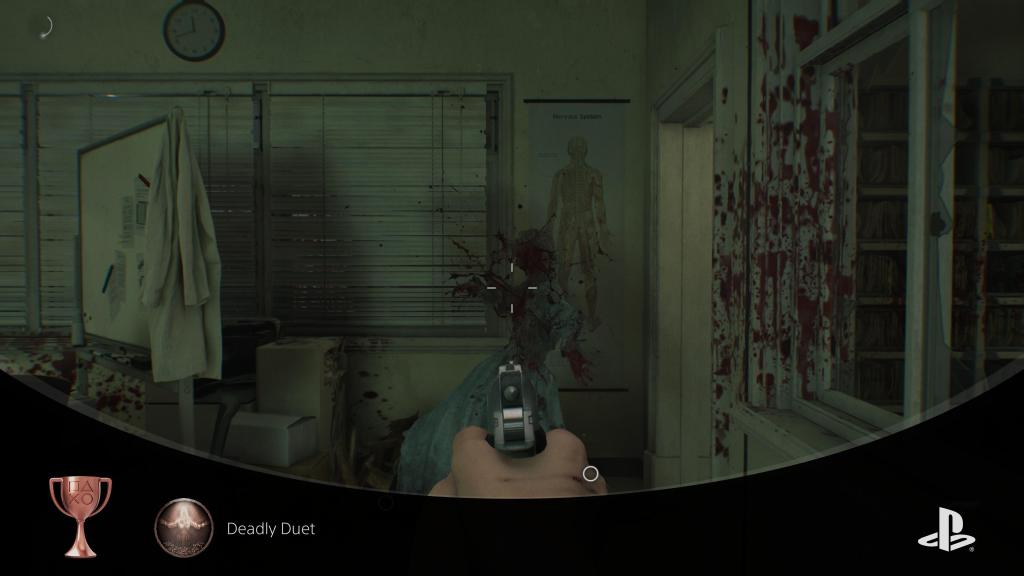 Laboratorio on täynnä lickereitä, ja niiden kanssa on tulla taas hätä, sillä niitä on niin paljon. Yhdessä huoneessa niitä on kerralla jo useampi pari, ja päätän ottaa tehtäväksi putsata ne pois Leonia häiritsemästä. Licker-rykelmään ampuminen tehokkaalla Requiem-aseella tuo saavutuksen kolmen vihollisen ampumisesta yhdellä iskulla.