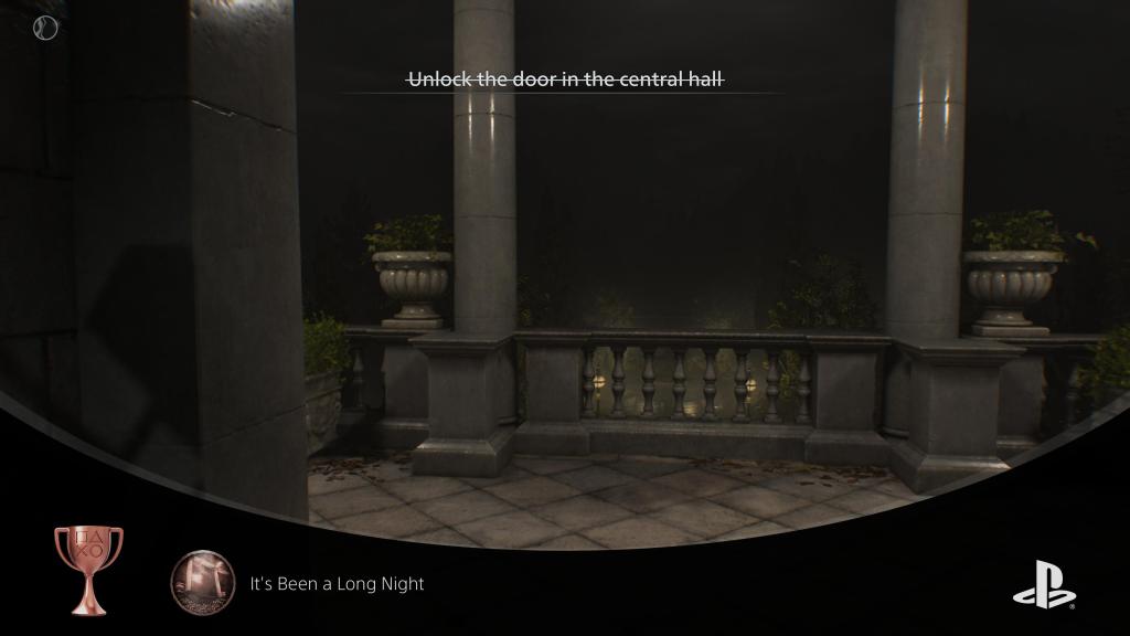 Kuin luin, että Shadow Ghostia pääsisi pakoon valoisiin huoneisiin, oli päivänselvää, että jossain kohtaa kaikki valot sammuisivat – mutta kyllä se hetki silti kouraisi vatsanpohjasta. Tässä kohtaa olen jo kirjoittanut ylös, että tällä pelillä on potentiaalia olla paras Resident Evil. Koska Shadow Ghostin ohi ei mahdu käytävällä, se pitää saada seuraamaan Gracea leveämpiin kohtiin käytävää, tai mielellään sisälle johonkin huoneeseen. Sitten se on jalat alle ja sulakekaapille mars! Grace saa sulakkeen paikalleen ja pääsee pakenemaan valoisaan aulaan portista, mutta sitten hirviö kurottaa hänen peräänsä, tarttuu häntä jalasta ja kiskoo hänet takaisin pimeyteen…