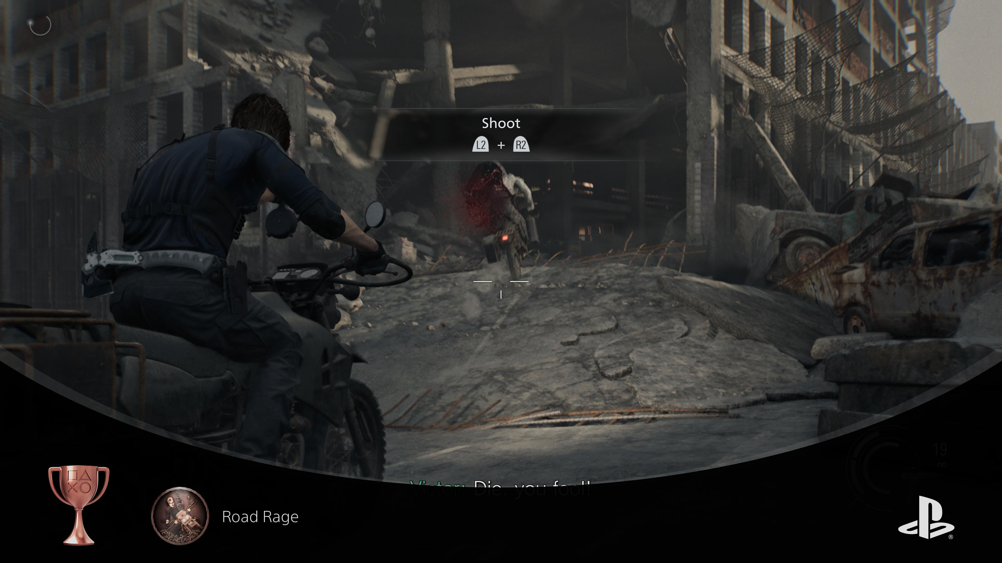 Kun portti on pamahtanut auki, Leon lähtee kohti Raccoon Cityn keskustaa BSAA:n tukikohdasta löytämällään moottoripyörällä. Myös Victor Gideon on saapunut paikalle, mutta tällä on moottoripyörän lisäksi raketinheitin. Leon ajaa takaa Victoria, ja kaksikon moottoripyöräralliin liittyvät myös susimutaatiot, jotka Leonin on ammuttava nopeasti kiusaamasta häntä. Kaksikon takaa-ajo päättyy Victorin kolariin, ja mies putoaa kuiluun moottoripyörän lentäessä perässä hänen päälle. Ei eksplisiittisesti näytettyä ruumista, ei vahvistettua kuolemaa. Leon toteaa, että on löydettävä Grace, ja jatkaa matkaansa keskustaa kohti.