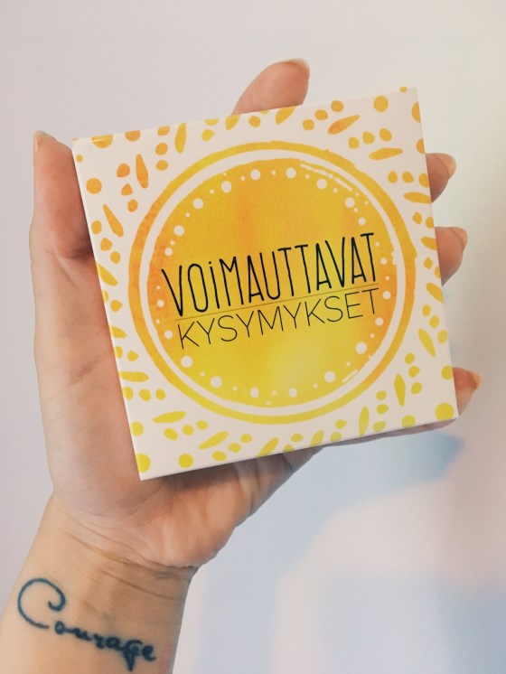 Hitaasti starttaavana kuumepäivänä on taas hyvä hetki pysähtyä pohtimaan minuutta Sanna Wikströmin suunnitteleman Voimauttavat kysymykset -korttisetin kautta. Ensimmäisen postauksen itsetutkiskelustani … Lisää